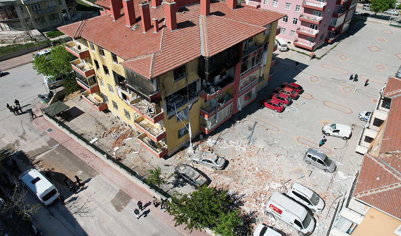 Sitenin otoparkında bulunan araçlar da hasar görürken, karşıda bulunan bir apartmanın 3. katındaki dairede meydana gelen hasar, yaşanan patlamanın büyüklüğünü gösterdi.
