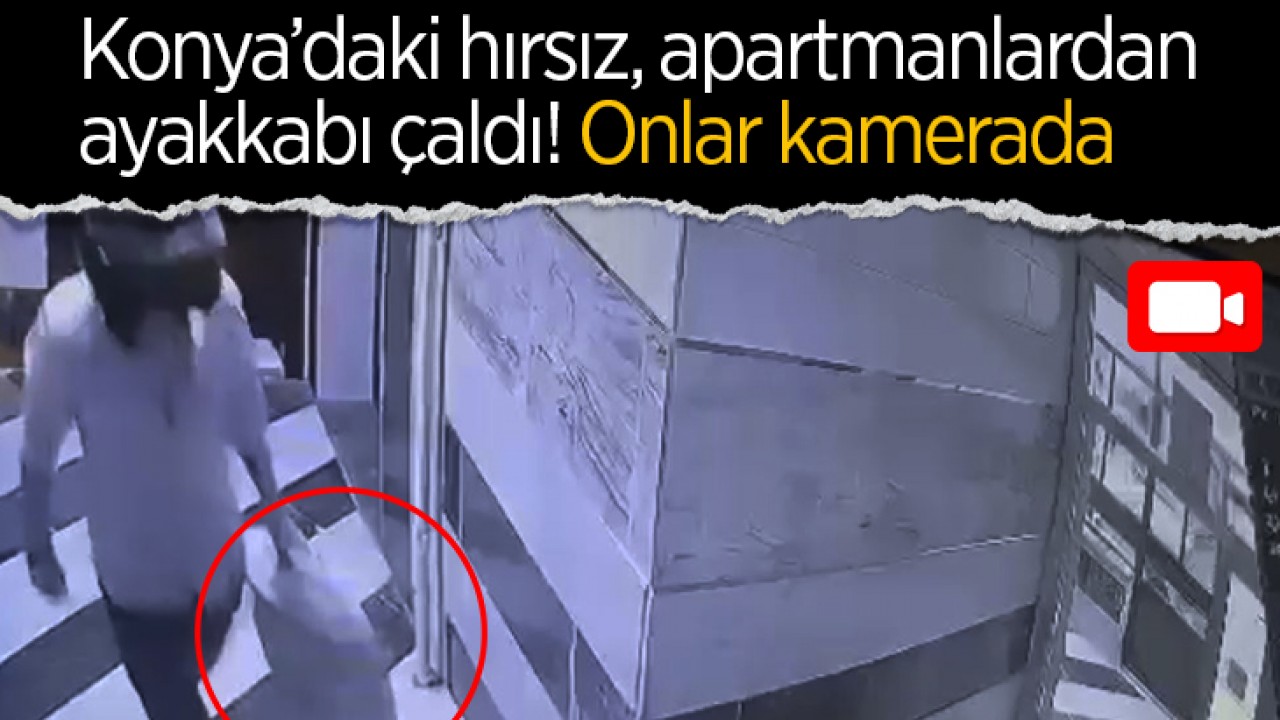 Konya’da girdiği apartmandaki dairelerin kapı önlerinde bulunan ayakkabıları çalan hırsız güvenlik kamerası tarafından kaydedildi.