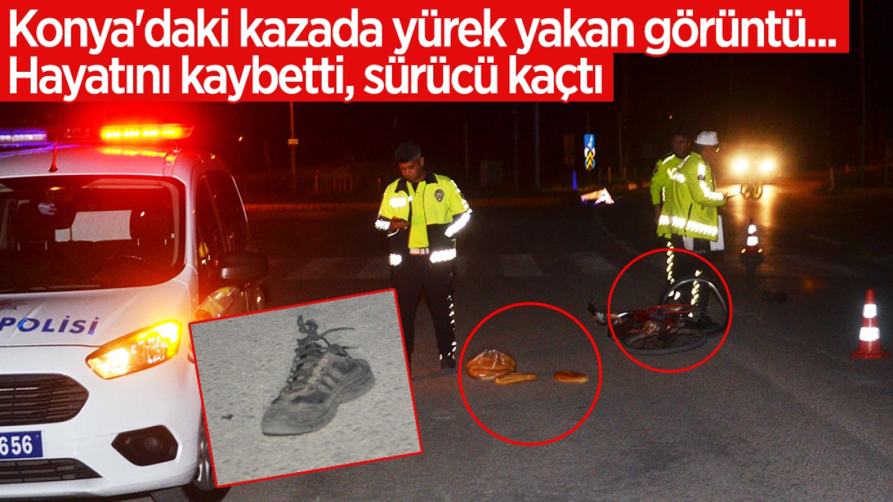 Konya'nın Ereğli ilçesinde plakası ve sürücüsü belirlenemeyen otomobil Ferdi Uslu'nun kullandığı bisiklete çarptı. Hayatını kaybeden Uslu'nun bisikletindeki ekmekler ve ayakkabısı ise etrafa saçıldı. Kazanın ardan kaçan vicdansız sürücünün yakalanması için polis ekipleri çalışama başlattı.