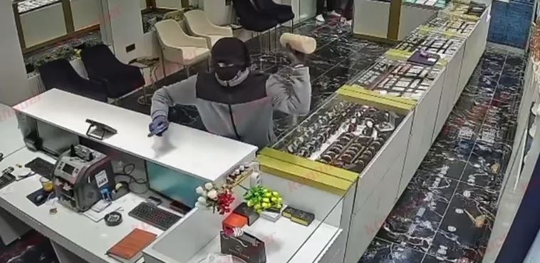 Öte yandan soygun anına ilişkin güvenlik kamerası görüntülerine de ulaşıldı. Görüntülerde yüzleri maskeli 3 şüphelinin kuyumcuya girerek kısa sürede vitrindeki imitasyon bilezikleri aldığı görülüyor. Şüphelilerin biber gazı kullandıktan sonra hızla iş yerinden çıkarak kaçtıkları anlar ise güvenlik kamerasına saniye saniye yansıyor.