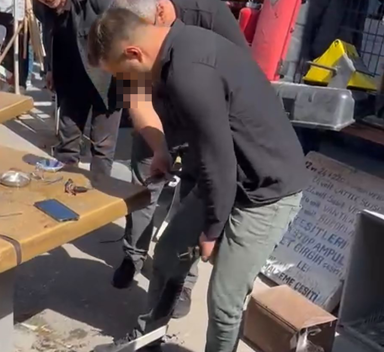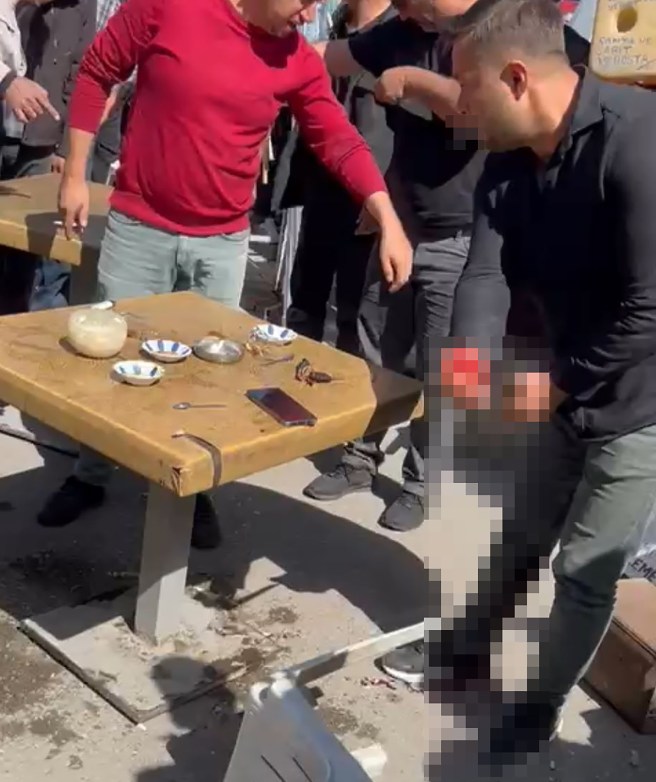 Bıçakla yaralanan şahıs, kemerini çıkararak bacağına tampon uygularken aynı zamanda sigara içmeye de devam etti. Çevredekiler, tehditlerin havada uçuştuğu kavgada tarafları ayırmak için uzun çaba sarf etti.