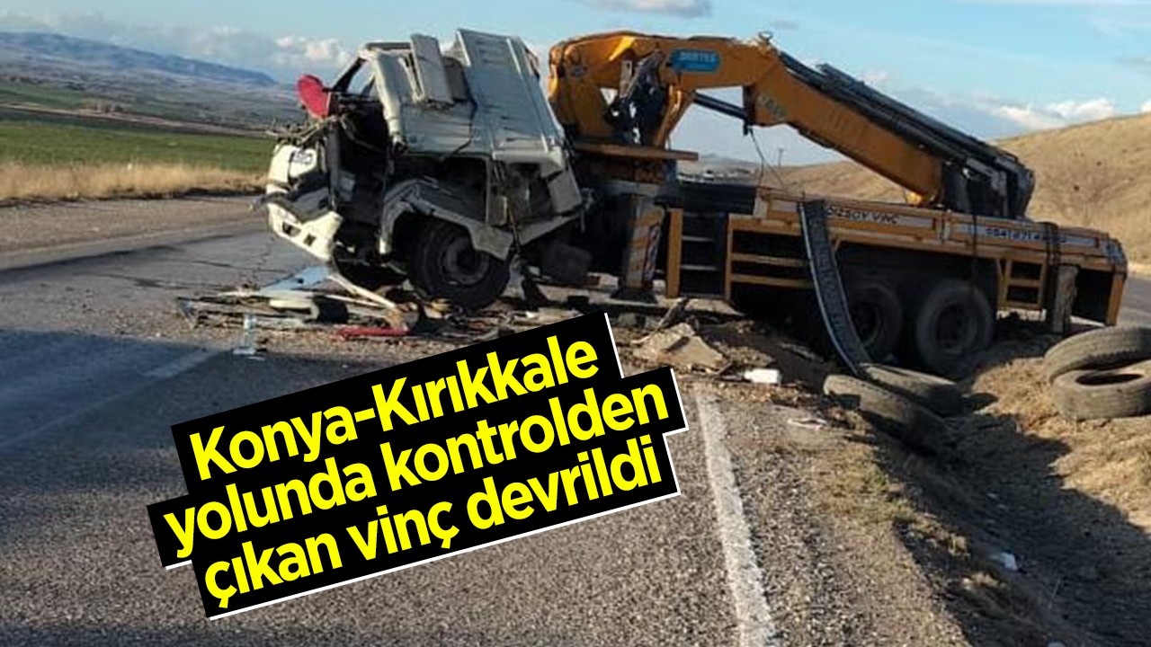Konya-Kırıkkale yolunda kontrolden çıkan vincin devrilmesi sonucu meydana gelen kazada sürücü yaralandı.