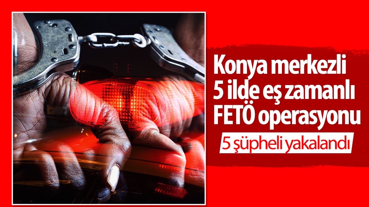 Konya merkezli 5 ilde düzenlenen eş zamanlı operasyonda FETÖ/PDY Silahlı Terör Örgütünün Türk Silahlı Kuvvetleri mahrem yapılanmasında görev aldığı tespit edilen 5 kişi yakalandı.