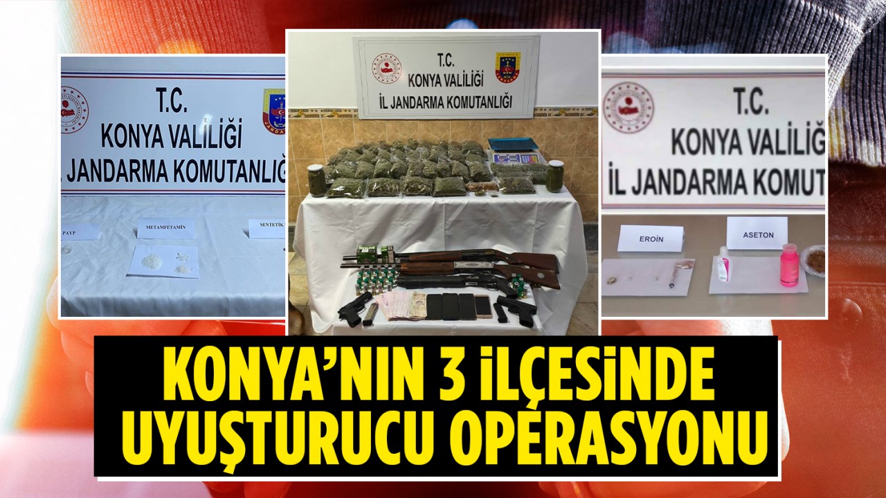 Konya İl Jandarma Komutanlığı'nın Konya'nın Akşehir, Karatay ve Ereğli ilçelerinde yapmış olduğu operasyonlarda binlerce uyuşturucu madde ele geçirildi.