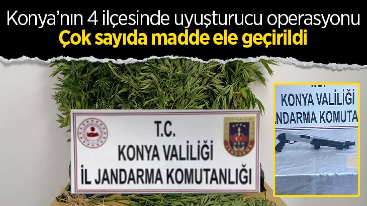 Konya İl Jandarma Komutanlığı ekiplerince; Ereğli, Bozkır, Çumra ve Sarayönü ilçelerinde düzenlenen uyuşturucu operasyonlarında binlerce madde ele geçirildi.