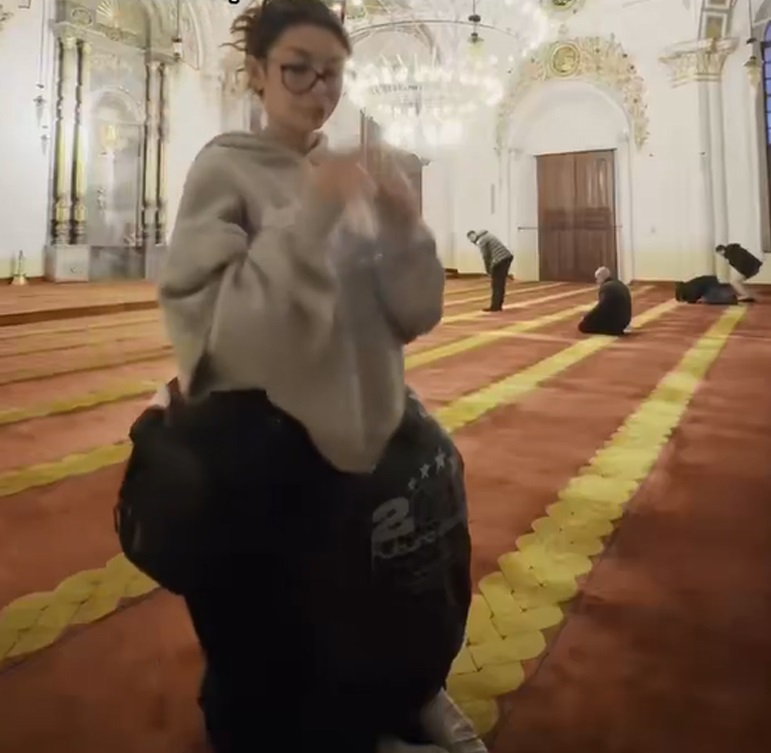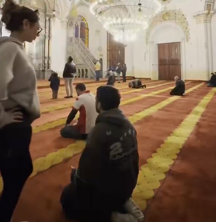 Görüntülerde, bir genç kızın ibadethane içerisinde manevi ortama aykırı şekilde davrandığı ve rahatsız edici hareketler sergilediği görüldü.