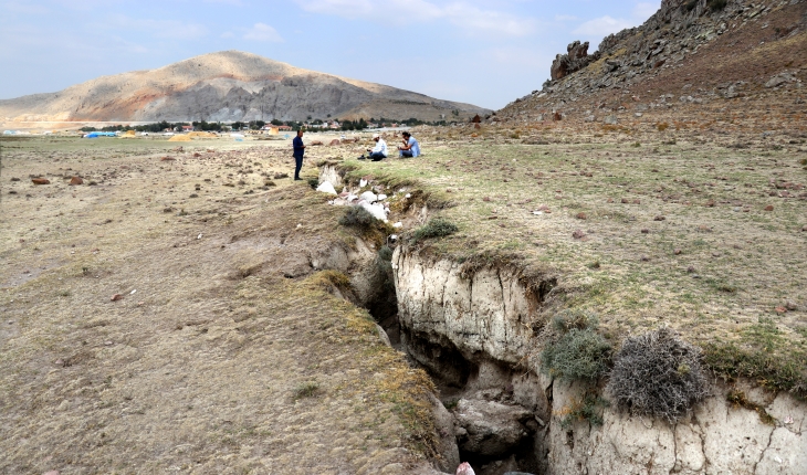Prof. Dr. Eren, Çumra'nın Adakale Mahallesi'nde kuruyan Hotamış Gölü havzasında görülen yarıklara ilişkin değerlendirmelerde bulundu.