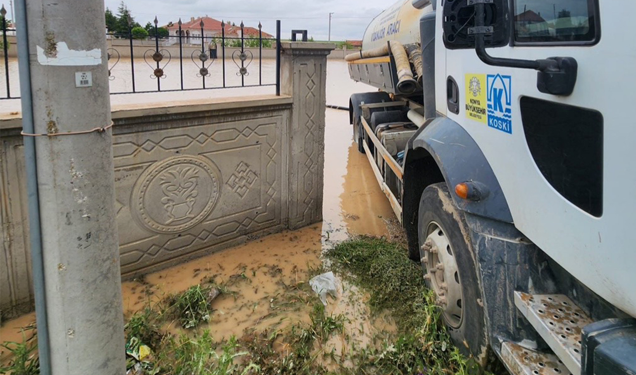 Konya ve bir çok ilde sağanak yağış etkili oldu. Konya Büyükşehir Belediyesi Afet Koordinasyon Merkezi (AKOM) , Konya'nın iki ilçesinde ekiplerin suyun tahliyesi için çalışma başlattığını sosyal medya hesabından duyurdu.