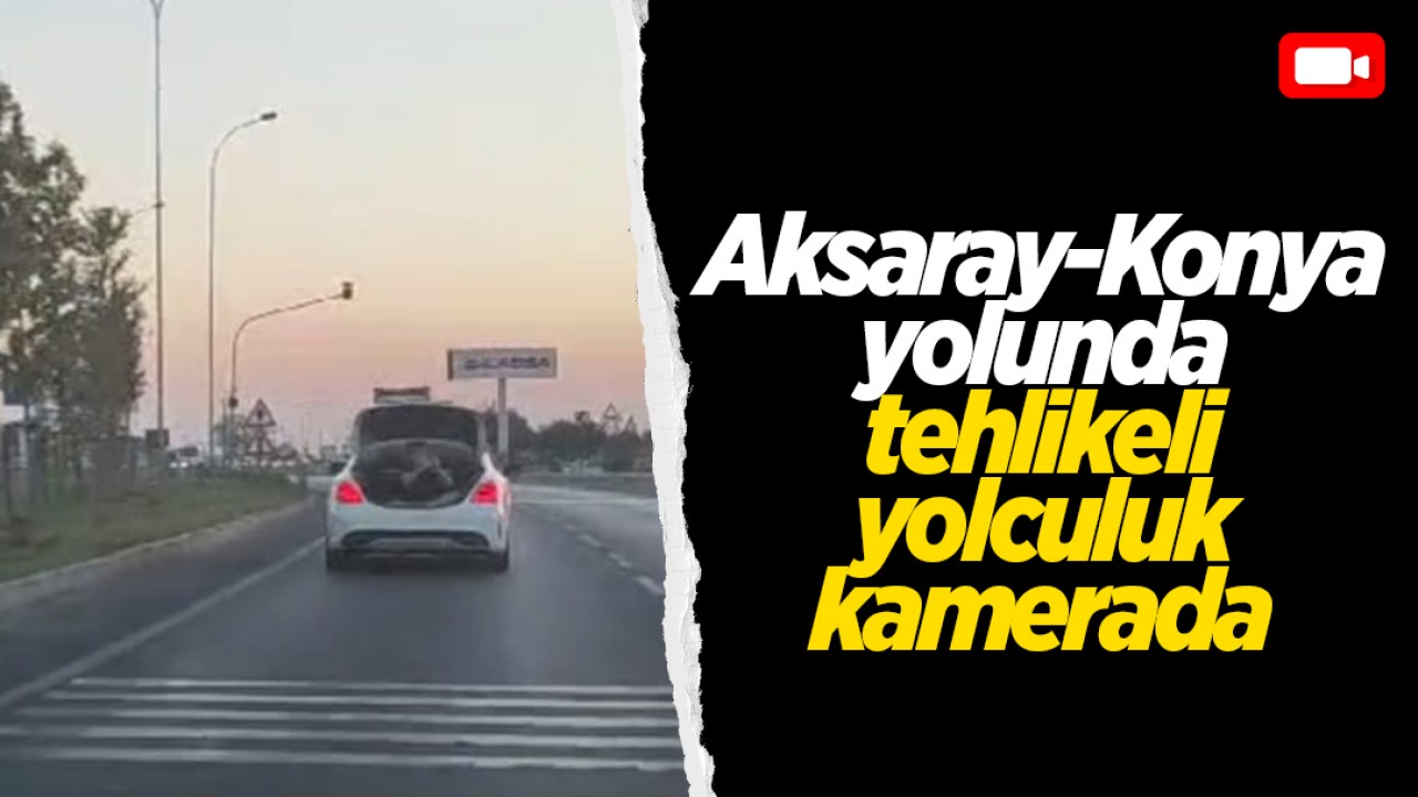 Aksaray- Konya kara yolu Karasu kavşağında saat 19.50 sıralarında bir kişi, seyir halindeki otomobilin kapağı açık bagajında yolculuk yaptı. Tehlikeli yolculuk yapan kişi, o anları da cep telefonu kamerasıyla kaydetti. Bu sırada yoldan geçen başka araçtaki vatandaşlar ise o anları cep telefonu kamerasına kaydetti.