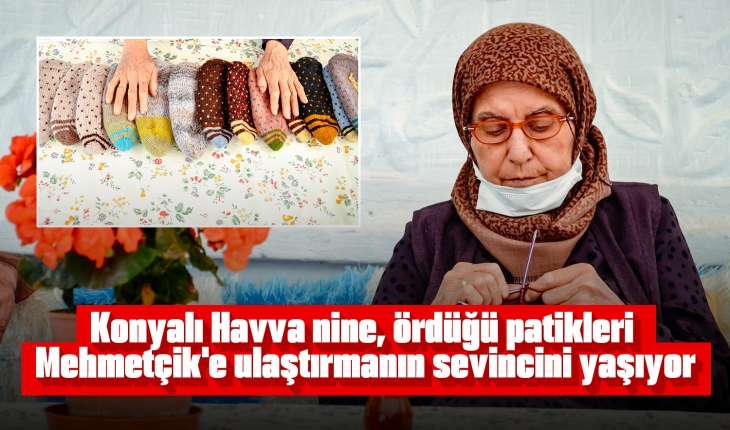 Konya'da yaşayan 81 yaşındaki Havva Eseroğlu, örerek bağışladığı patikleri, Milli Savunma Bakanlığı vasıtasıyla Ağrı'da görev yapan Mehmetçiklere ulaştırmanın mutluluğunu yaşıyor.