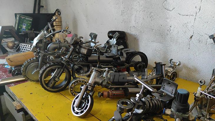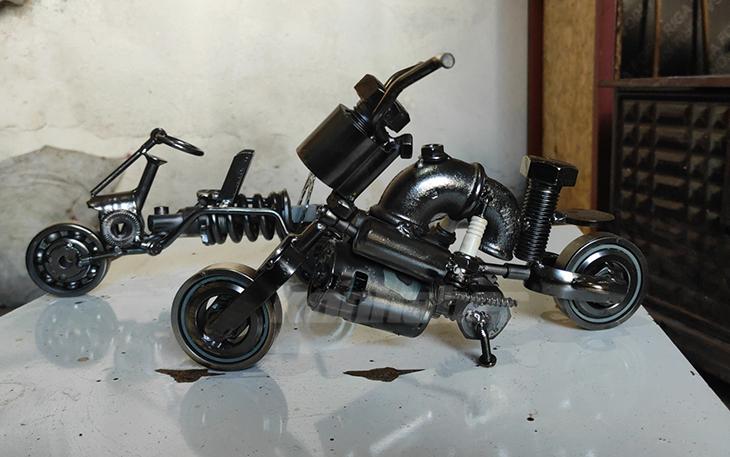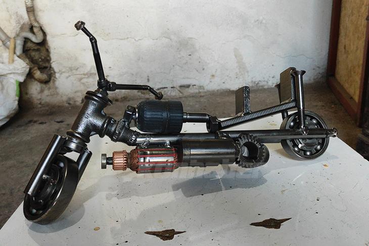 Konya'nın Seydişehir ilçesinde metal ustası Hasan Direk, iş yerinden artan somun, vida ve zincir benzeri metal geri dönüşüm malzemeleri değerlendirerek hayalini kurduğu motosikletlerin maketlerini yapıyor.