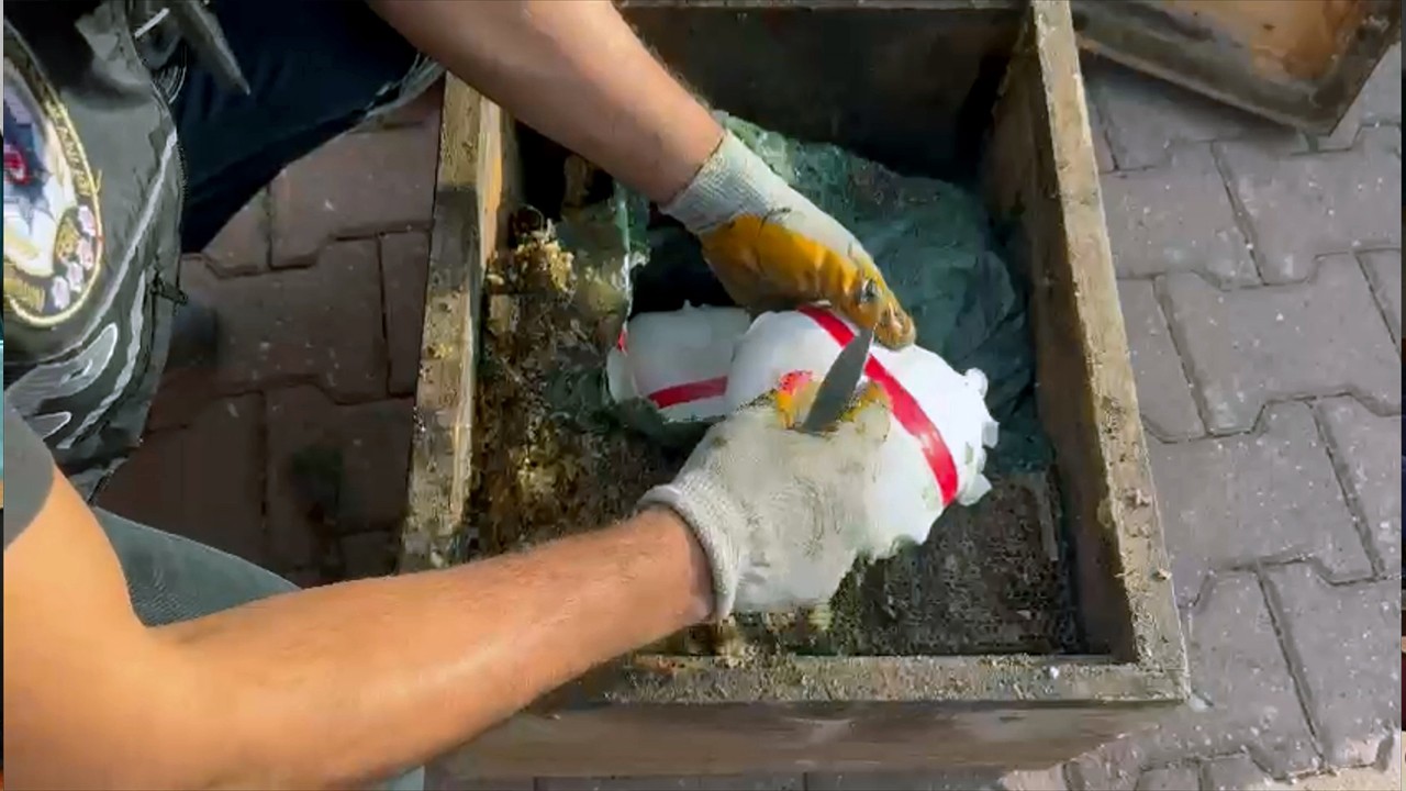 Adana’da narkotik polisinin takiple durdurup, arama yaptığı hafif ticari araçta narkotik köpek ‘Aşil’ bagajdaki kovanlara tepki verdi. Araç sürücüsü Erdem B, “Kraliçe arımız var, onu taşıyoruz” dedi. Kovanların içini açan polis 53 kilo 600 gram metamfetamin ele geçirdi.