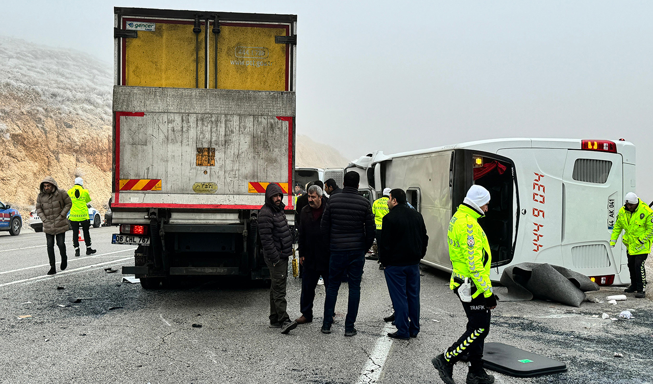 Malatya'nın Akçadağ ilçesinde yolcu otobüsünün devrilmesi sonucu 4 kişi öldü, 36 kişi yaralandı.