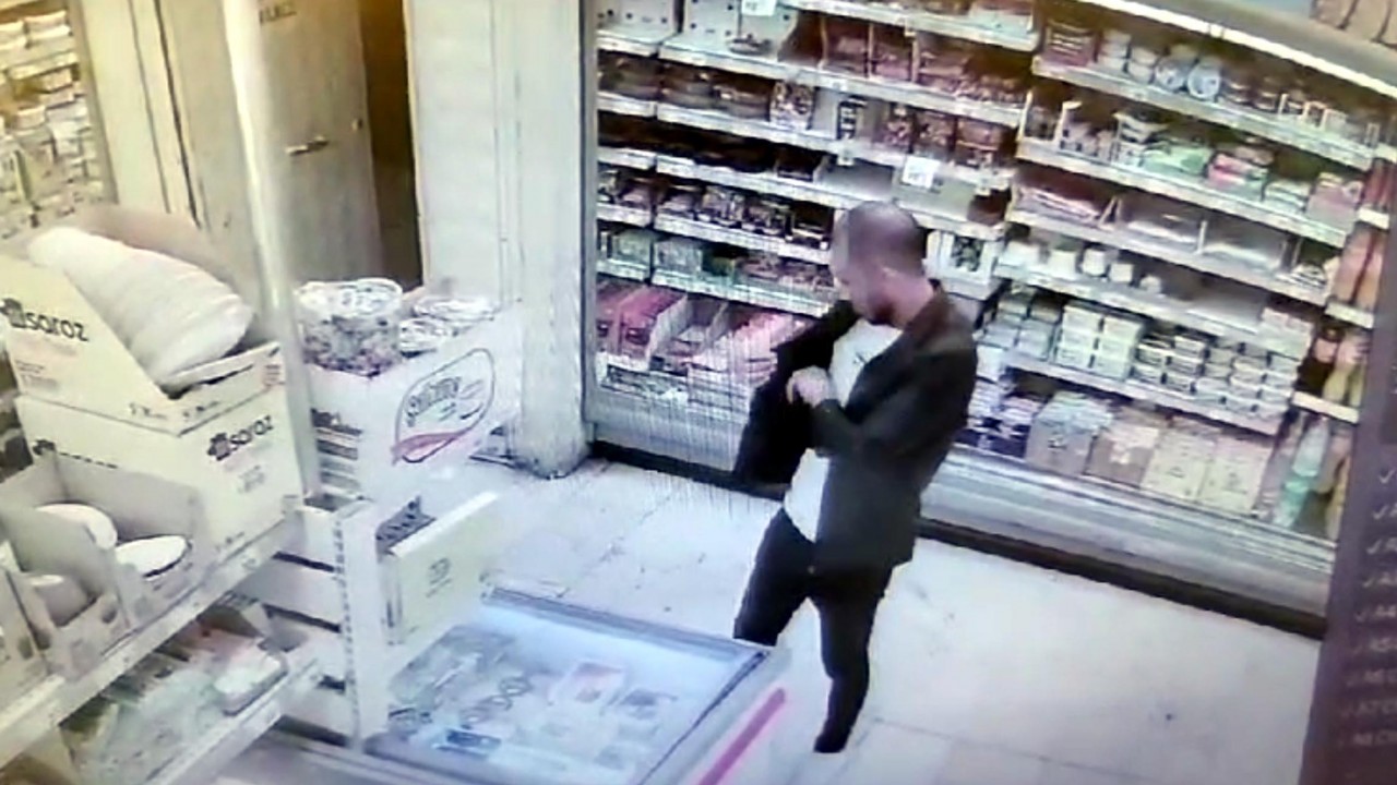 Bir süre markette dolaşan kişi, aldığı ikinci et paketini de ceketin diğer cebine koydu. Güvenlik kamerasını izleyen market görevlisi, hırsızlığı fark edip, şüpheliden aldığı ürünleri bırakmasını istedi. Ürünleri bırakmayan şüpheli, görevliyi itip, çaldığı ürünlerle marketten kaçtı. Şüphelinin ürünleri ceketinin ceplerine koyduğu anlar, marketin güvenlik kameraları tarafından kaydedildi. Market yetkililerinin şikayeti üzerine polis, güvenlik kamerası görüntülerini inceleyip, şüpheliyi yakalamak için çalışma başlattı.