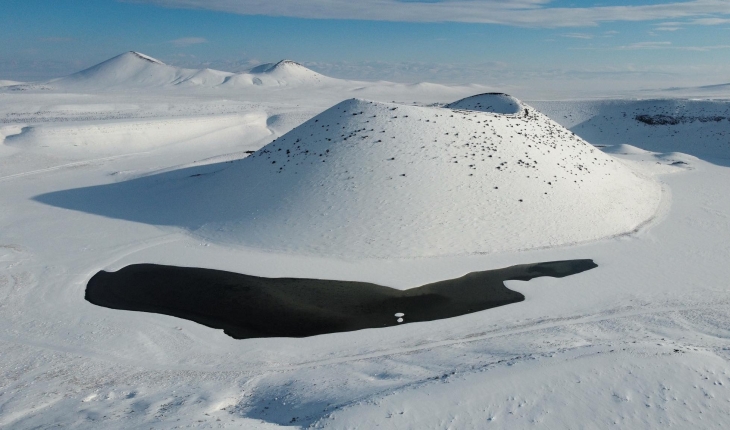 Bir süredir etkili olan kar yağışı Meke Gölü'nde bambaşka görüntüler ortaya çıkardı. Dünyanın nazar boncuğu olarak bilinen Meke Gölü, kar yağışıyla birlikte ziyaretçilerin akına uğradı.
