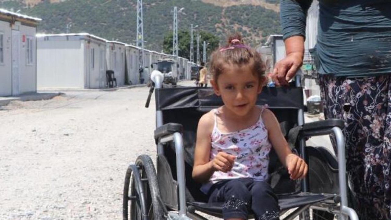 Gaziantep'in Nurdağı ilçesinde konteyner kentte yaşayan ve tekerlekli sandalyesi çalınan 5 yaşınndaki Merve, sabah kapıdan çıktığında kendisi için bırakılan yeni tekerlekli sandalyesi ile karşılaştı.