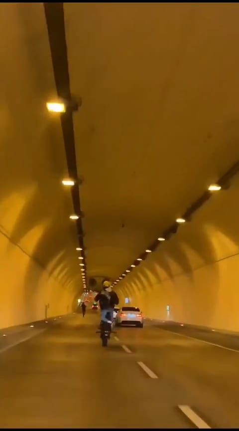 Sarıyer Çayırbaşı Tüneli’nde 24 Mart Pazar günü saat 22.00 sıralarında, bir motosiklet sürücüsünün tünel içinde akan trafiğe aldırmadan motosikletinin tek teker üstüne kaldırarak ilerledi.