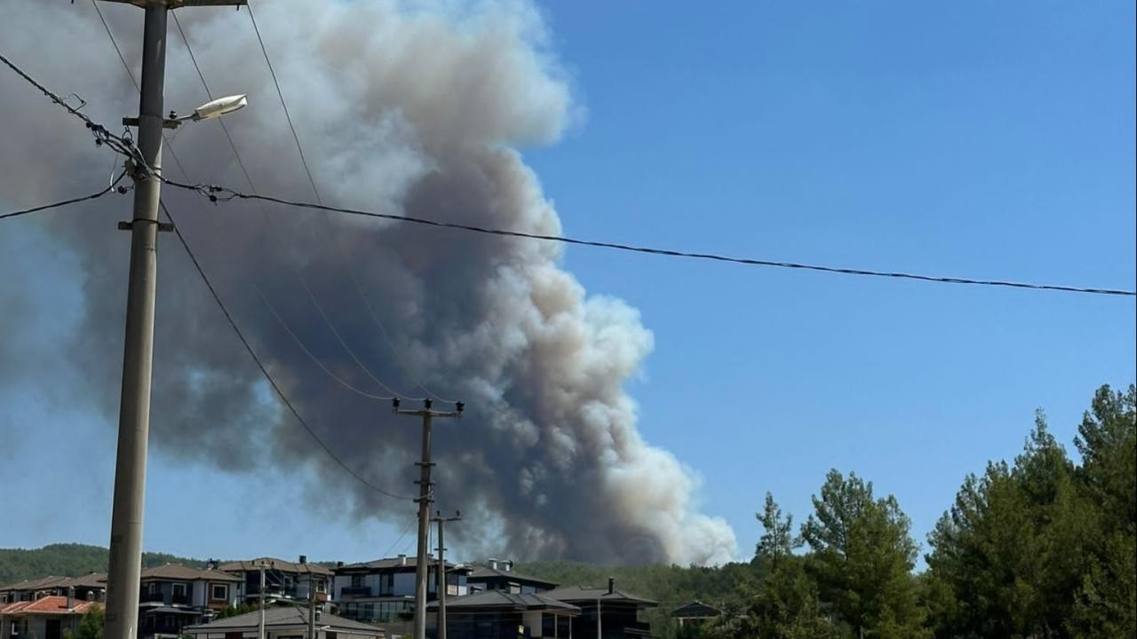 Muğla'nın Menteşe ve Yatağan ilçelerindeki ormanlık alanda çıkan yangınlara, havadan ve karadan müdahale ediliyor.