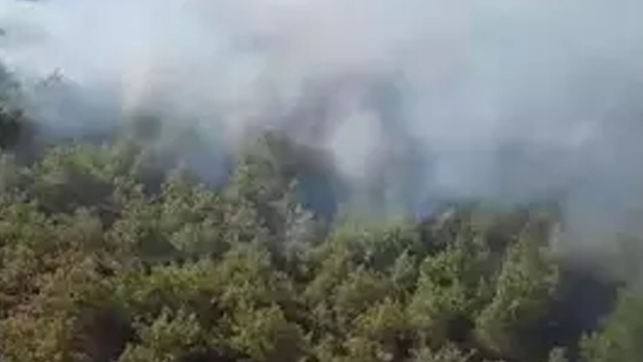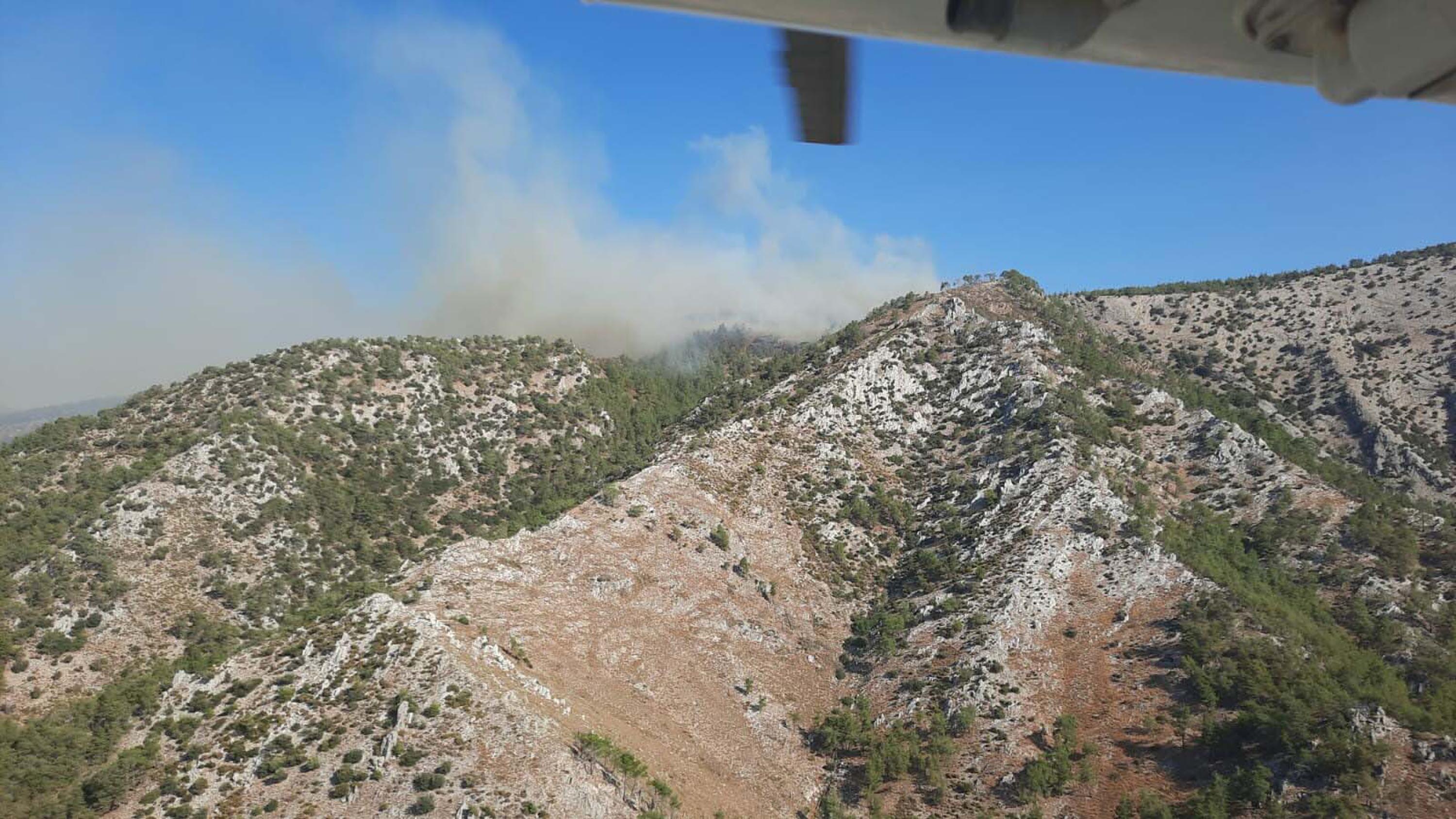 Havadan ve karadan müdahale edilen yangın kontrol altına alınmaya çalışılıyor.