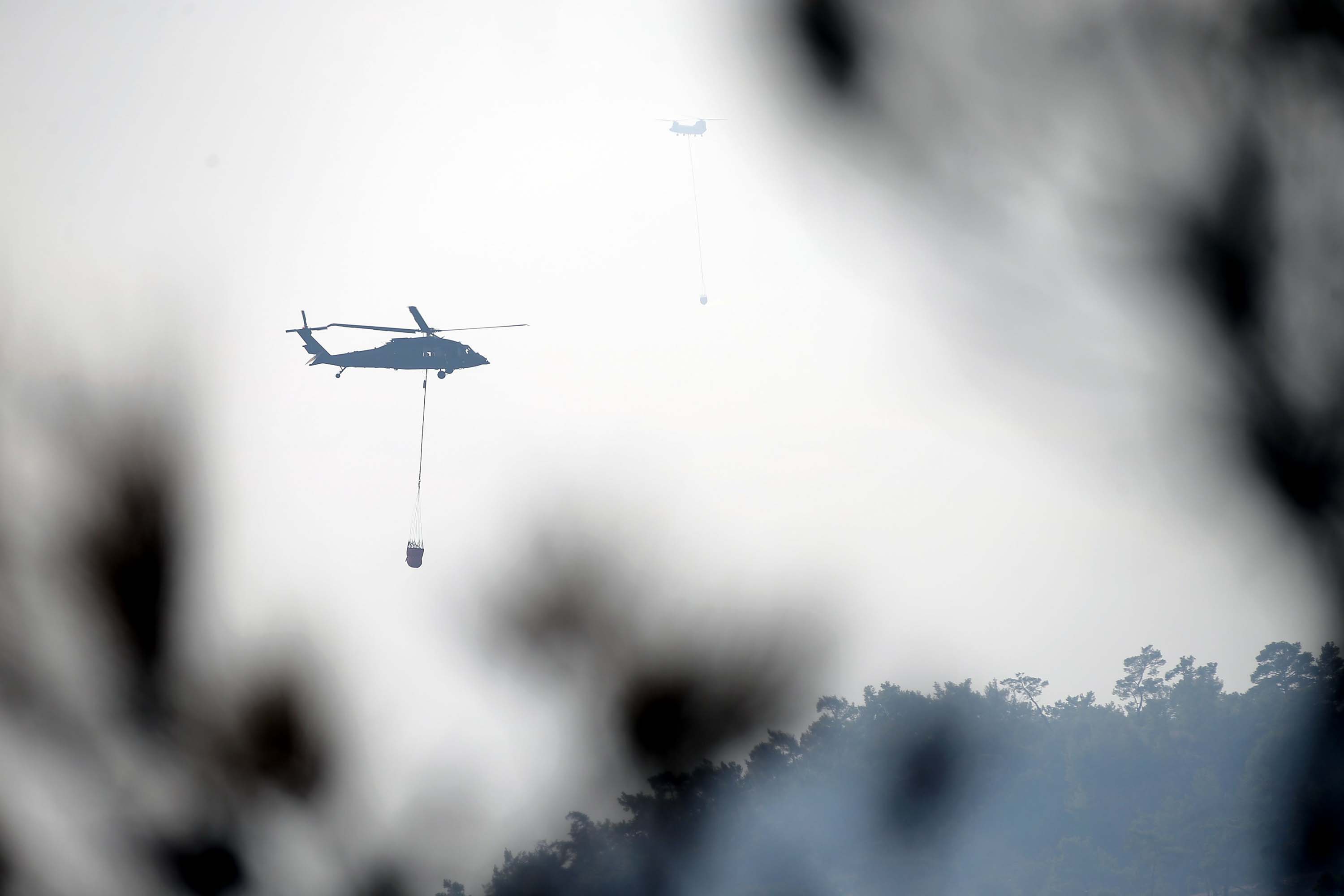 Havanın kararmasıyla ara verilen uçak ve helikopterlerle müdahaleye bugün, günün ilk ışıklarıyla yeniden başlandı. Ekiplerin çalışması sürerken, Sahil Güvenlik unsurları da aldıkları tedbirlerle hava araçlarının daha güvenli alanlardan su almasını sağlıyor.