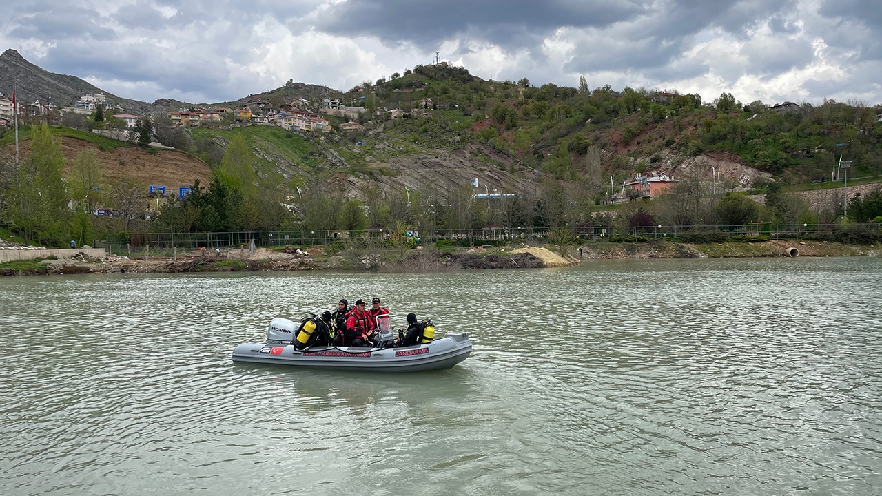 Ekipler, Munzur Çayı'nın 35 kilometrelik alanı ile Uzunçayır Baraj Gölü'nün Mameki Köprüsü civarında bot ve dron yardımıyla arama yapıyor.