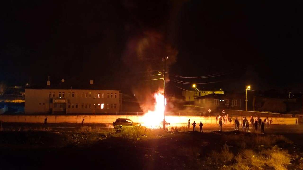 İhbar üzerine bölgeye polis ve itfaiye ekipleri sevk edildi. Ateşleri söndürmek isteyen itfaiye ekiplerine bazı göstericiler taşla saldırdı.