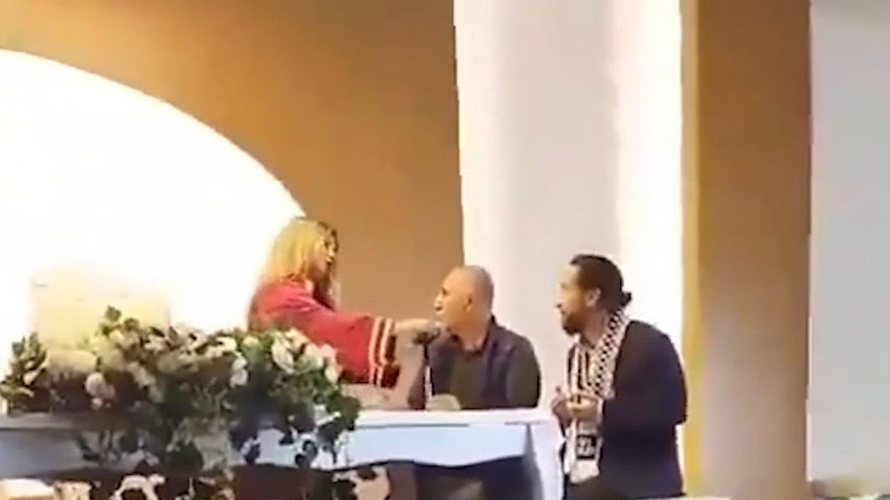 Karşıyaka Belediyesi Zübeyde Hanım Nikah Sarayı'nda tören düzenlendi. Nikah töreni öncesi bir kişi, mikrofonu eline alarak dua etmek istedi. Bu sırada nikah memuru, "Beyefendi, burası bir resmi daire. Burada mikrofona izin vermiyoruz, resmi nikah kıyıyoruz. Evde yapabilirsiniz" diyerek, engelledi. Mikrofon elinden alınan hoca, yine de duasını etti. Sosyal medyada paylaşılan görüntü tartışma yarattı.