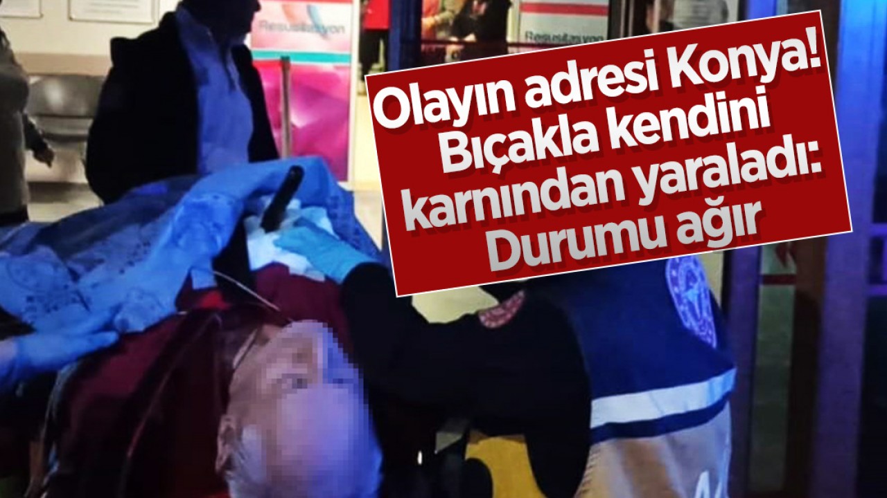 Konya'nın Seydişehir ilçesinde akli dengesi yerinde olmadığı öne sürülen işitme engelli Salih S. (62), eline geçirdiği bıçakla kendini karnından yaraladı. Karnında saplı bıçakla hastaneye kaldırılan Salih S.’nin durumunun ağır olduğu öğrenildi.
