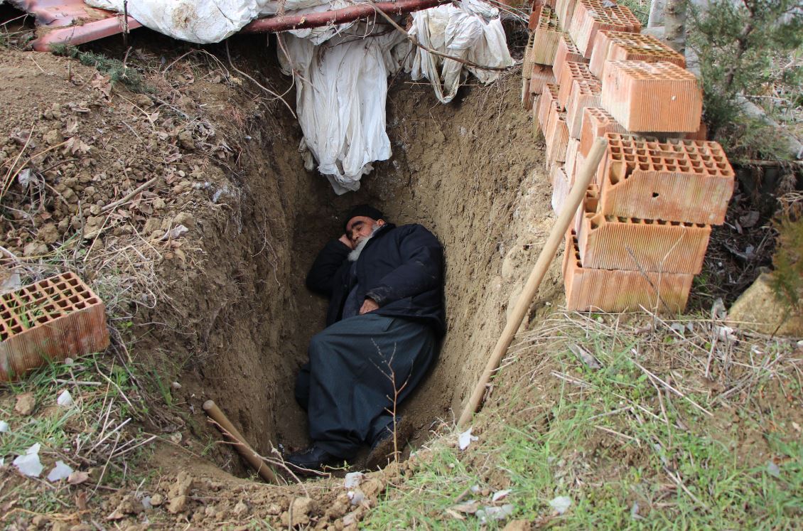 Amasya'nın Suluova ilçesinde 78 yaşındaki bir vatandaş, kimseye zahmet vermemek için ölmeden önce mezarını kazdı. Kazma-kürekle toprağı kazıp hazırladığı kendi mezarına geceleri gelip yatan yaşlı adam, görenleri şaşırtıyor.