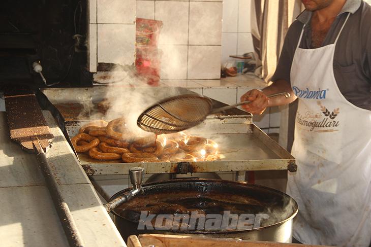 Günün ilk saatlerinde iş yerine gelerek hamuru hazırladığını söyleyen Çetingil, “Hamur kabardıktan sonra tek tek kesiyoruz. Daha sonra pekmezli suya atıyoruz oradan alarak susamlarız. Oradan da fırıncıya gider. Burada herkesin tek tek ayrı işleri var. Pekmeze attığımız hamurlar fırında daha iyi kızarmasını sağlıyor. Eğer pekmezleme olmazsa susamlar yanar, hamur beyaz olarak kalır” şeklinde konuştu.