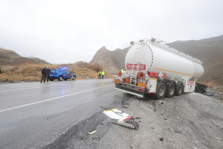 Hakkari-Van kara yolunun Sarıtaş köyü yakınlarında sürücülerinin ismi henüz öğrenilemeyen otobüs ile yakıt tankeri çarpıştı.