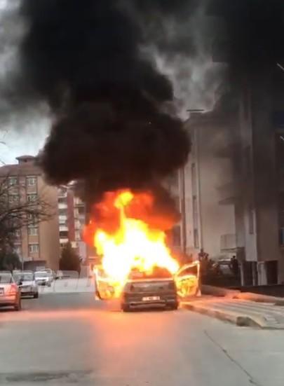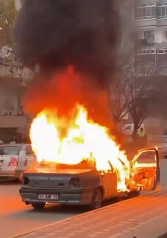 Ekiplerin müdahalesi ile yangın söndürülürken, otomobil kullanılamaz hale geldi.