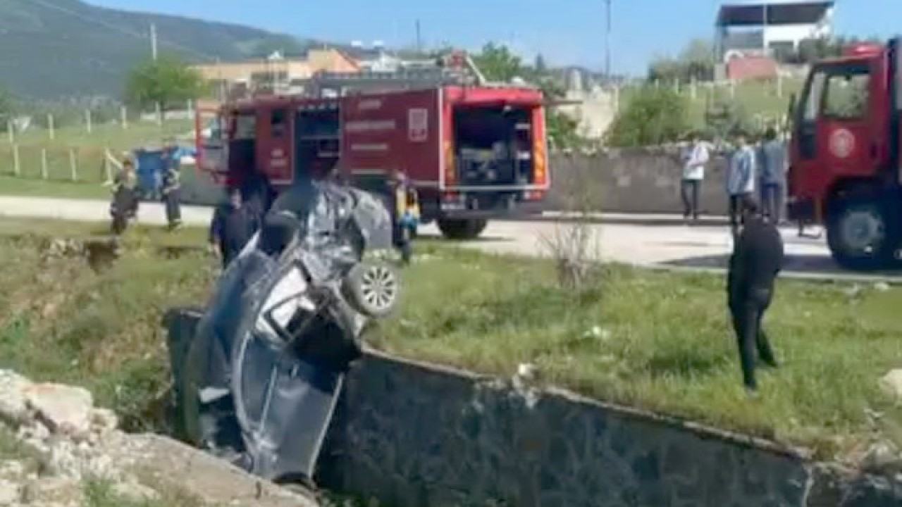 Gaziantep'in Nurdağı ilçesinde, sürücüsünün direksiyon hakimiyetini kaybetmesiyle dereye uçan otomobildeki 4 kişi yaralandı.