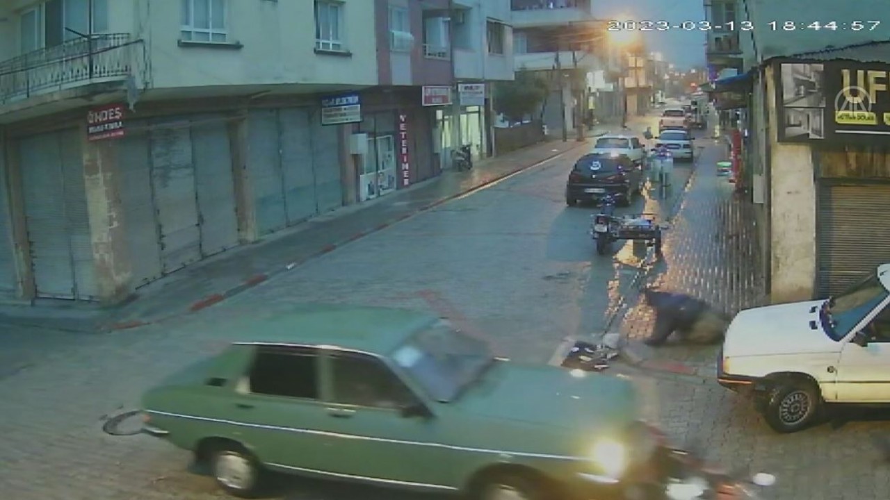 Kaza ve teselli etme anı, çevredeki bir iş yerinin güvenlik kamerası tarafından kaydedildi.