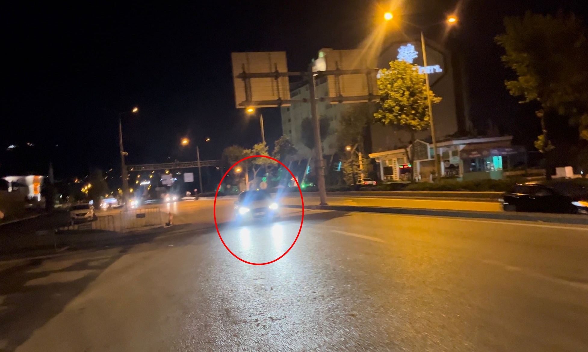 Sürücü, ihtara uymayıp, geri manevra ile otomobilini polislerin üzerine sürerek kaçmaya çalıştı. Bu sırada polis, havaya uyarı ateşi açtı. Ali O. kaçmaya devam edince, otomobilin lastiğine ateş edildi. Sürücü, patlak lastiğe rağmen ters yönde kaçmaya devam etti, o anlar saniye saniye kameraya yansıdı.