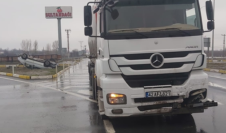 Kaza, Afyonkarahisar-Konya karayolu Sultandağı ilçesinde meydana geldi. Edinilen bilgilere göre, M.E., idaresindeki 26FTP 727 plakalı otomobil, kavşakta sürücüsünün ismi henüz belirlenemeyen 42 AFZ 821 plakalı tanker ile çarpıştı. Çarpışmanın etkisi ile savrulan araç ters dönerek durabildi. Kazada sürücüsü ile M.E., araçta bulunan O.T., isimli şahıslar yaralandı. Yaralılar olay yerine gelen ambulanslar ile Bolvadin Devlet Hastanesi’ne kaldırıldı. Kazanın ardından güvenlik güçleri tarafından inceleme başlatıldı.