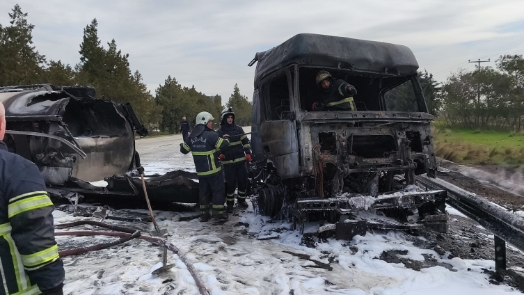 Tanker, yolda sürüklendikten sonra yanmaya başladı. Yanan tankerin sürücüsü, bu sırada olay yerinden geçen İlçe Emniyet Müdürlüğü ekiplerince araçtan çıkarılarak kurtarıldı.