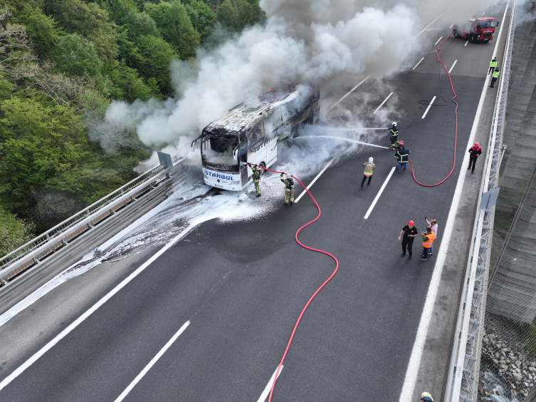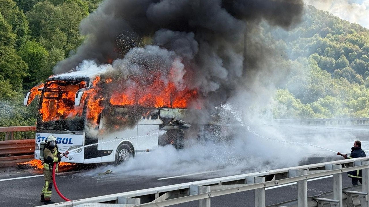 Durumu fark eden sürücü, otobüsü sağ şeride çekerek yolcuları tahliye etti. Haber verilmesi üzerine bölgeye gelen itfaiye ekipleri, yangını söndürdü.