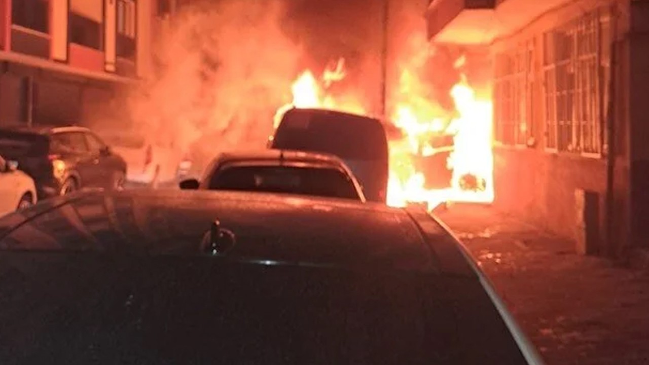 Alev topuna dönen araçların yandığı o anlar çevredeki bir vatandaş tarafından görüntülendi.