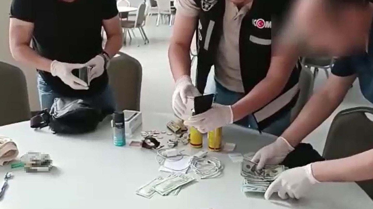 Şüphelilerin T.A. ve S.A. olduğu belirlendi. Aliağa'daki otelde yakalanıp, gözaltına alınan şüphelilerin kaldığı odada ve üzerlerindeki aramalarda sahte olduğu değerlendirilen 100'lük banknotlar halinde toplam 4 bin 700 dolar, 9,7 gram metamfetamin, 3 adet sentetik ecza hap, 2 adet uyuşturucu kullanma düzeneği, 1 adet sıfır cep telefonu ele geçirildi.