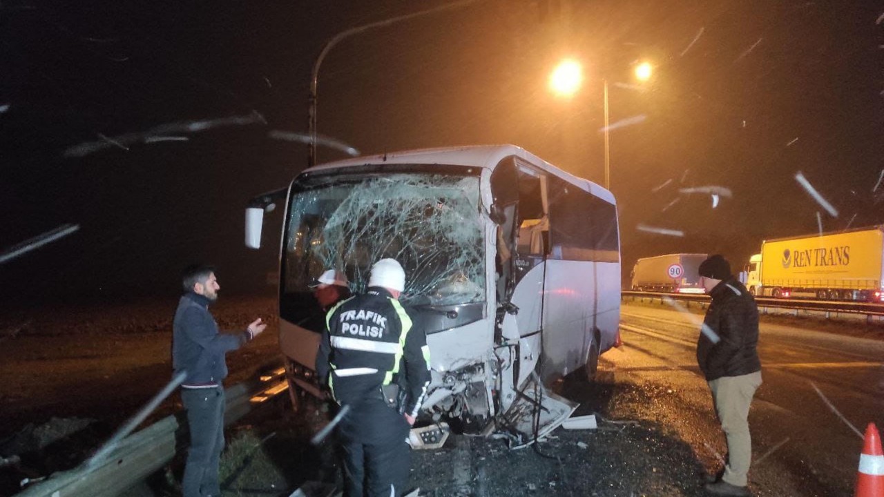 Edirne'de emniyet personelini taşıyan servis midibüsü ile turistlerin taşındığı otobüsün çarpıştığı kazada 10’u polis 11 kişi yaralandı.