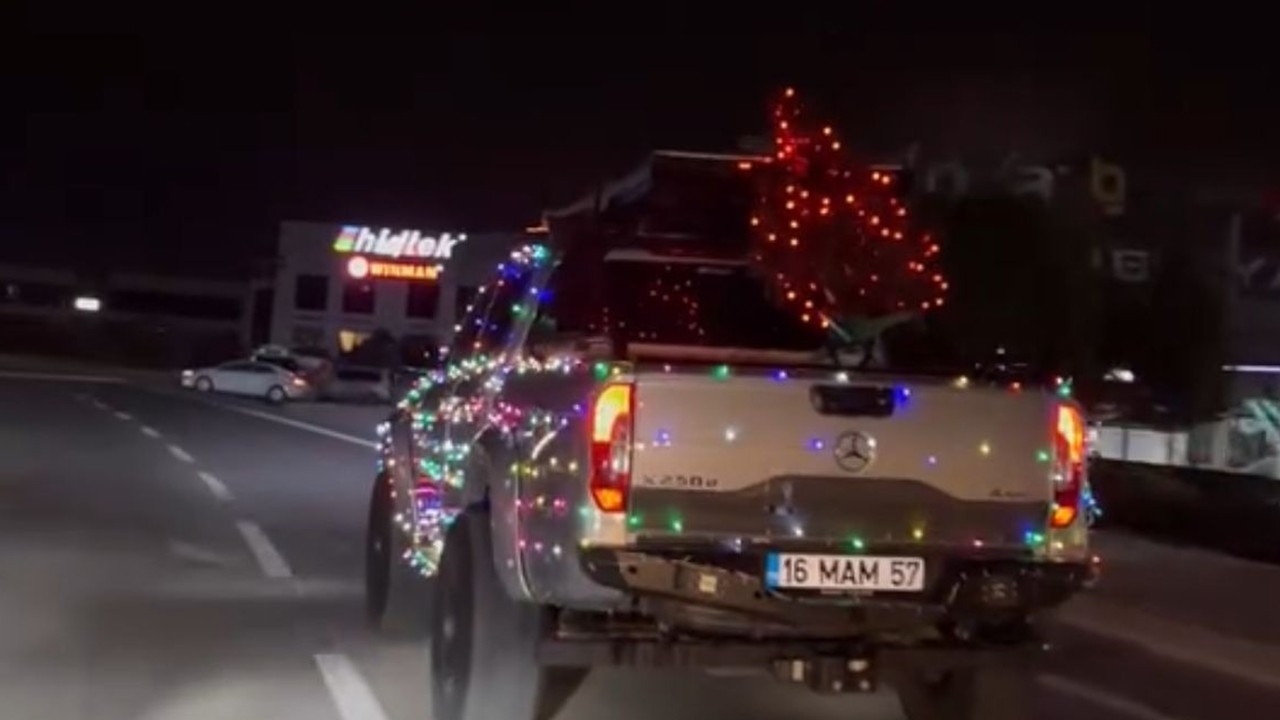 Bursa'da, bazı sürücüler araçlarını ve motosikletlerini yılbaşı ağacı ile renkli lambalarla süsleyip, sokak ve caddelerde tur attı.
