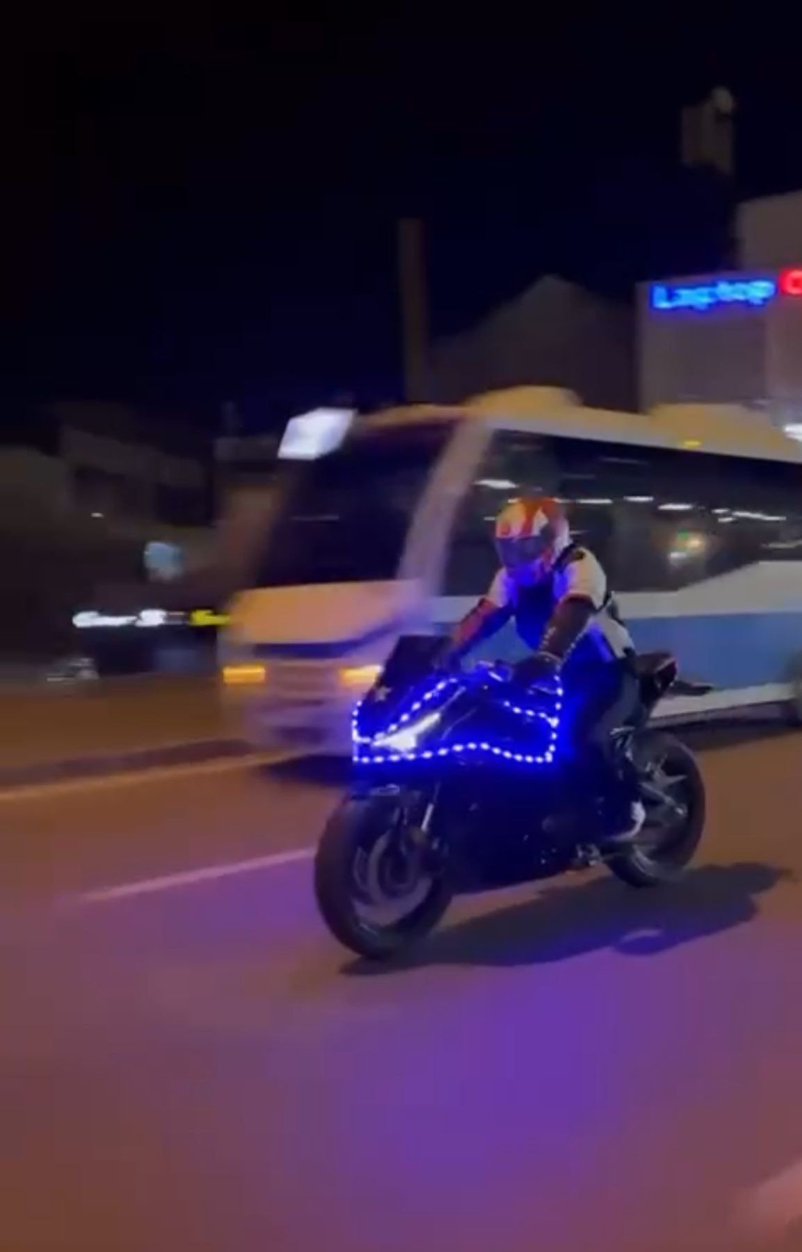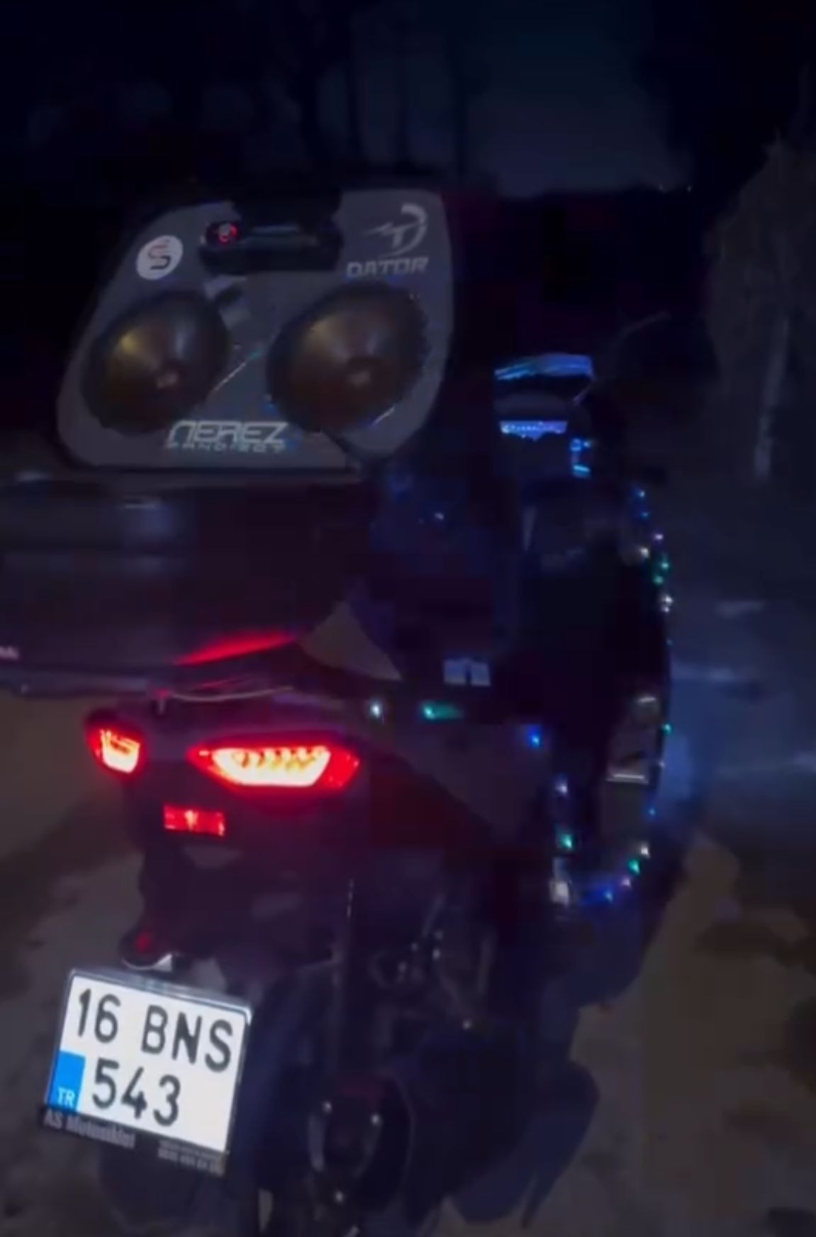Bursa'da, bazı sürücüler yeni yılın gelişini, rengarenk lambalarla süsledikleri, araç ve motosikletleriyle caddelerde tur atarak kutladı. O anlar cep telefonu kamerasıyla görüntülendi.