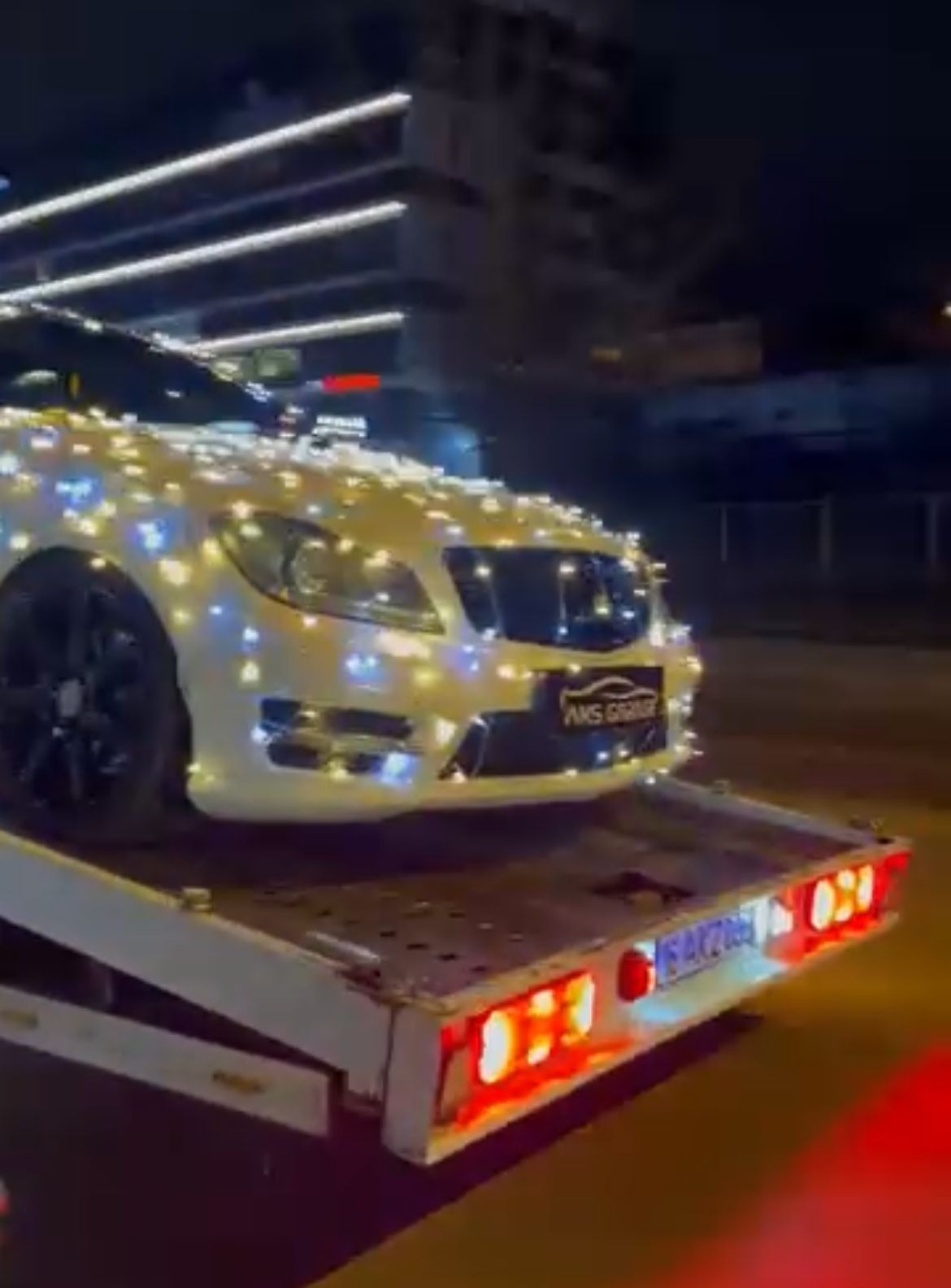 Bir sürücü ise rengarenk lambalarla donattığı otomobilini, çekici üzerinde gezdirdi.