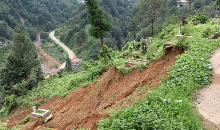 Rize’nin Çayeli ilçesine bağlı Büyükköy beldesinde bir mezar, şiddetli yağışlar neticesi yaşanan heyelanda yerinden 30 metre kaydı.
