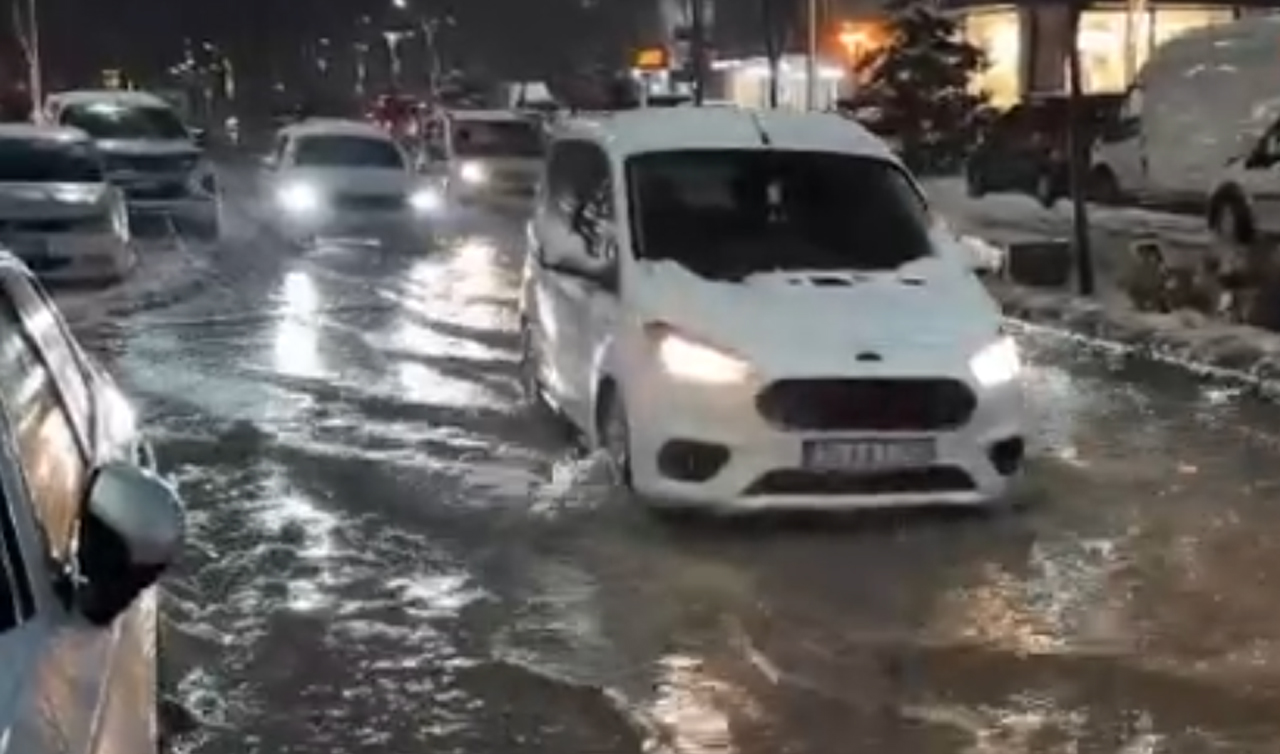 Hakkari'nin Yüksekova ilçesinde yoğun sağanak ve karla karışık yağmur nedeniyle caddeler göle dönerken, otomobiller ise adeta suda yüzdü.