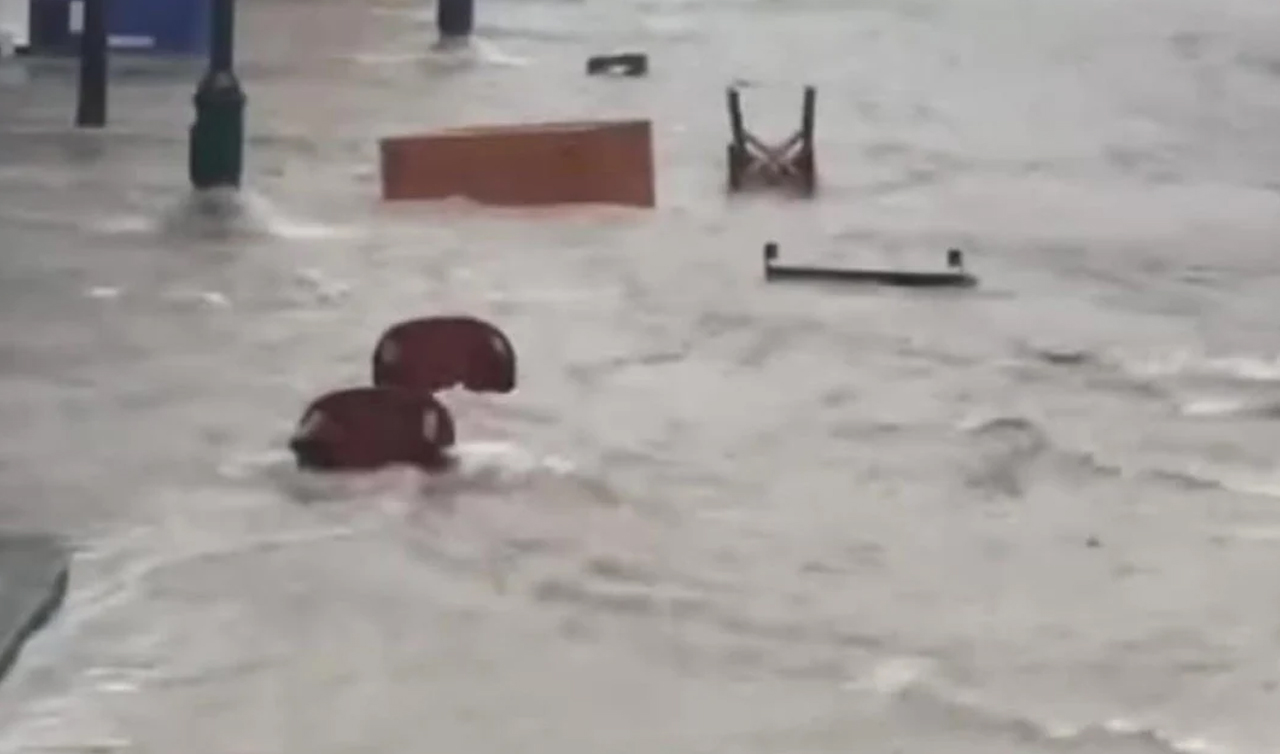 İzmir’in Çeşme ilçesinde etkili olan sağanak yağış nedeniyle yollar göle döndü, masa ve sandalyeler akıntıya kapılıp sürüklendi. İlçedeki etkili yağışın devam ettiği öğrenildi.