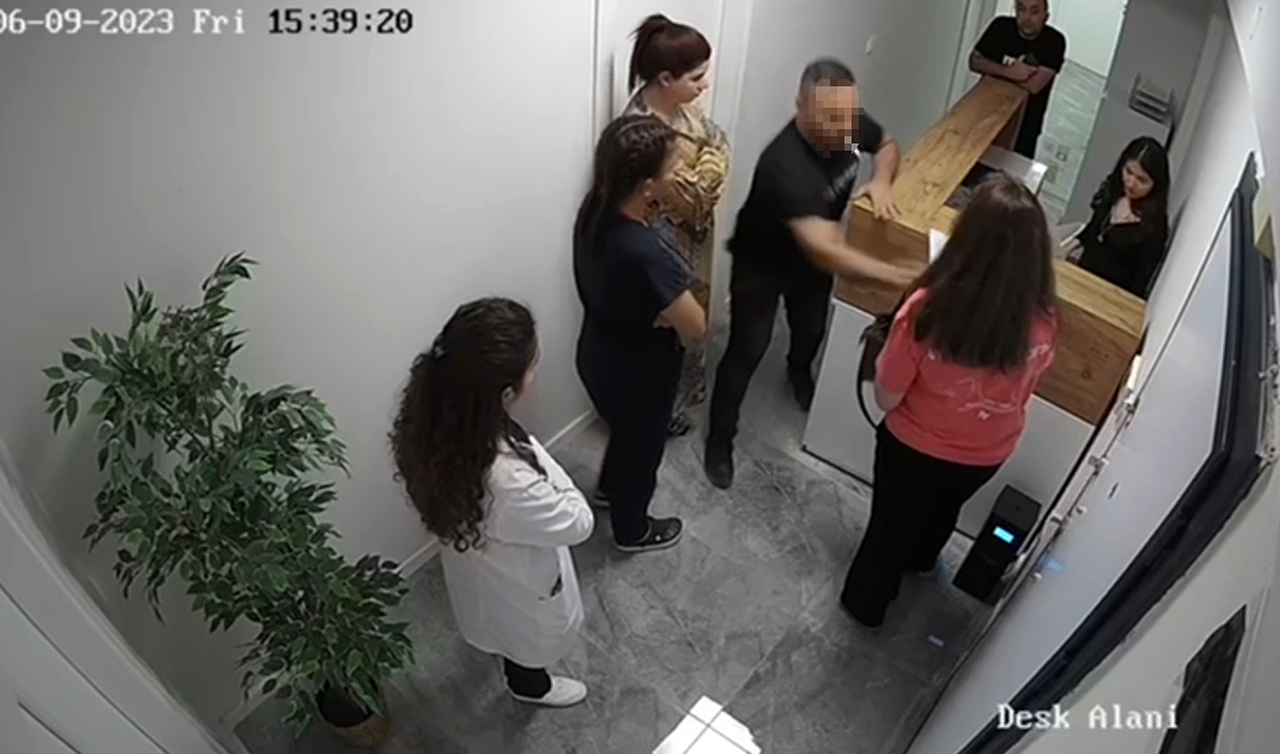 Antalya'da özel bir sağlık kliniğinde bir hasta yakını, annesi için yaptırdığı işlemlerin parasını isteyerek, diğer hastaların bilgilerinin yer aldığı formları gasbedip, sağlık çalışanlarını da darbederek kaçtı. Hukuki süreç devam ederken, olaya ilişkin güvenlik kamerası görüntüleri de dava dosyasına girdi.