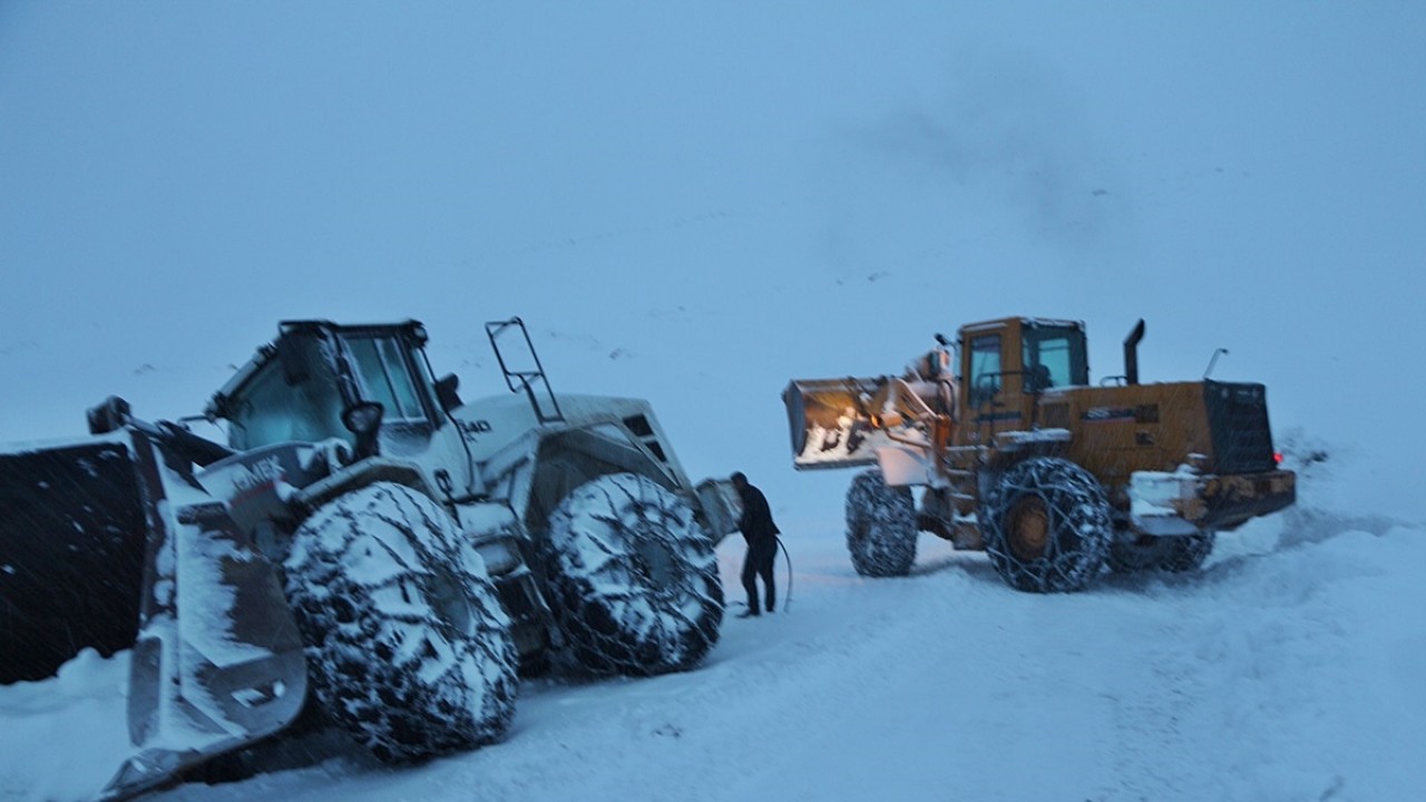 Tipi nedeniyle görüş mesafesinin olmadığını belirten iş makinesi operatörü Deniz Bingöl, “Yoğun kar yağışı ve fırtınayla birlikte köylerde hasta vardı. Köy yolunu açtığımız sırada görüş mesafesi olmadığı için kara saplandık, aracın devrilme riski vardı. Diğer ekipteki arkadaşlarımız geldi şimdi ve aracı çıkardık” dedi.