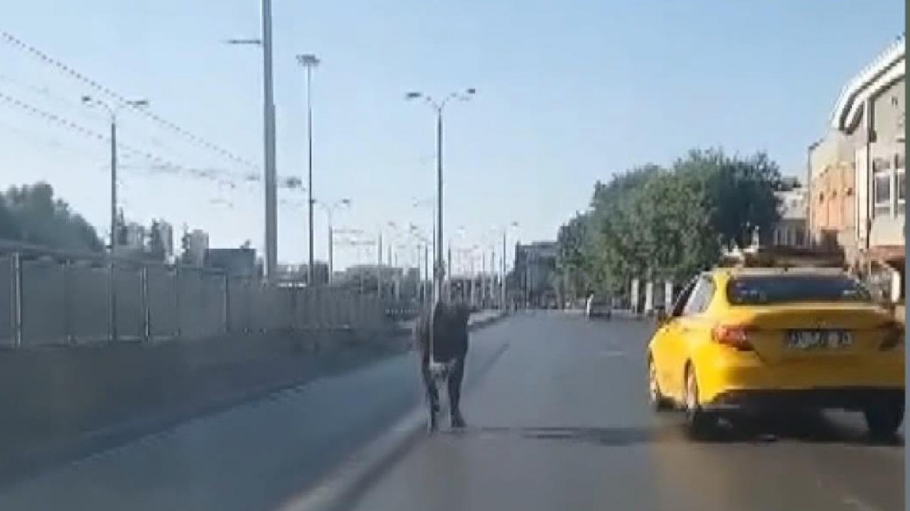 Boğanın cadde de koşma anları bir sürücü tarafından cep telefonu ile görüntülendi. Görüntüde, caddede koşan boğayı bir taksicinin durdurmaya çalıştığı görülüyor.